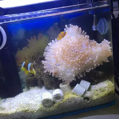 小丑鱼外观上属于雌雄同体,野生的雌鱼比雄鱼修长些,差异不大,最大体长可达18公分。色泽亮丽,体态高雅,加上长得健壮活泼,使得它们成为人工饲养最早的鱼种之一。