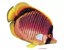 属雀鲷科,体长10-15cm,椭圆形。全身紫黑色,各鳍紫红色,体侧在眼睛后、背鳍中间、尾柄处有三条银白色环带,非常美丽,饲养水温26-27摄氏度,海水比重1.022-1.023,海水ph值8.0-8.5之间,水硬度7度-9度dh。饵料有海水中的藻类、动物性浮游生物、海水鱼颗粒饲料等。透红小丑多饲养在有无脊椎动物的水族箱中,栖息在微微摇的海葵触手中,楚楚动人,美艳绝伦。
