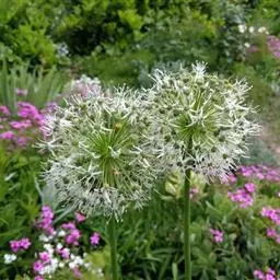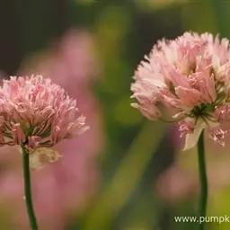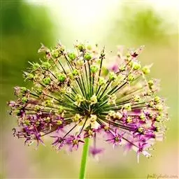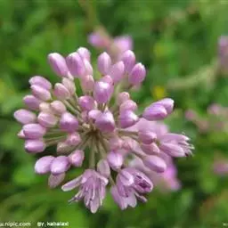 花薹为伞形花序,外有总苞,开花时总苞单侧开裂脱落,有小花800~3000朵,淡紫或粉红色,花丛生成球,鲜艳美观。