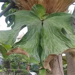 鹿角蕨是鹿角蕨科附生植物,鹿角蕨的叶有二型,营养叶较小,呈圆形、椭圆形或扇形,…