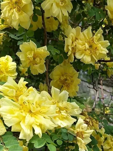 黄刺玫是蔷薇科蔷薇属的直立灌木。高2-3米;枝粗壮,密集;小叶片呈宽卵形或近圆形,边缘有圆钝锯齿,…