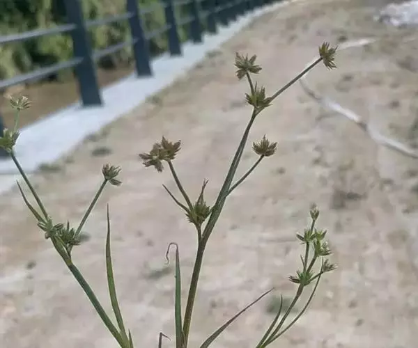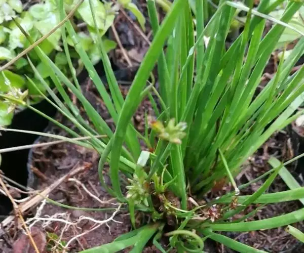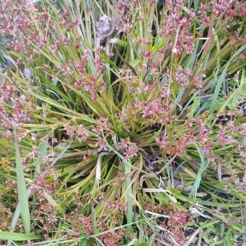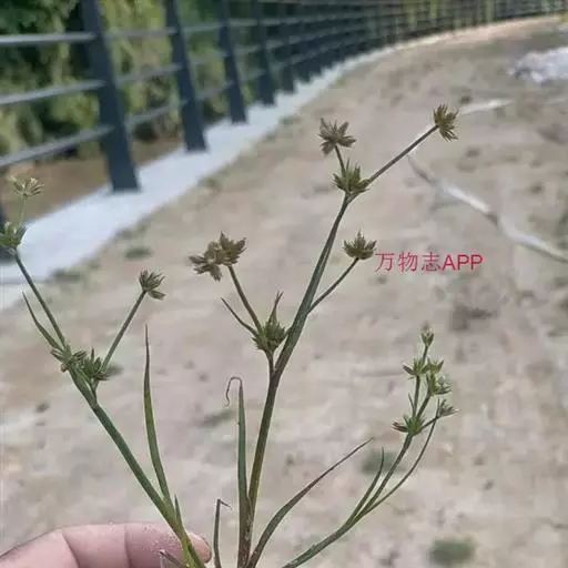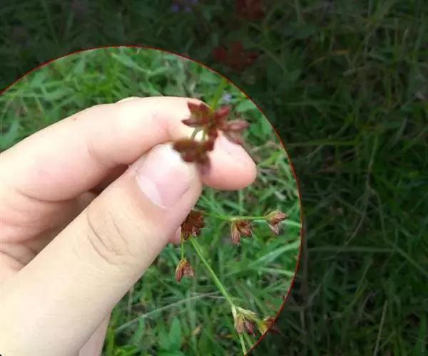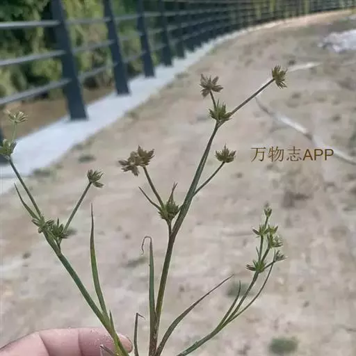 花序由5-20(-30)个头状花序组成,排列成顶生复聚伞花序,花序常分枝,具长短不等的花序梗;头状花序半球形至近圆球形,直径7-lO毫米,有(4-)8-15(20)朵花;叶状总苞片常1枚,线形,短于花序;苞片多枚,宽卵形或卵状披针形,长2-2.5毫米,顶端锐尖或尾尖,膜质,背部中央有1脉;花具短梗;花被片线状披针形至狭披针形,长3.5-4毫米,宽约1毫米,内外轮等长或内轮者稍短,顶端尖锐,背面有纵脉,边缘狭膜质,绿色或淡红褐色;雄蕊通常3枚,花药线形,长0.9-1毫米,淡黄色;花丝长1.2-1.4毫米;花柱甚短;柱头3分叉,细长,常弯曲。
