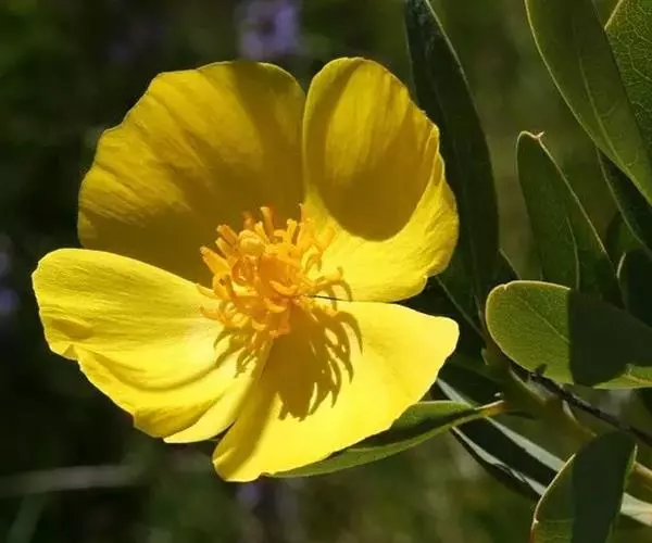 花单生于茎和分枝顶端;花梗长5~15厘米,花托凹陷,漏斗状或近管状,长3~4毫米,花开后成杯状,边缘波状反折;花萼卵珠形,长约1厘米,顶端呈短圆锥状,萼片2,花期脱落;花瓣4,三角状扇形,长2.5~3厘米,黄色,基部具橙黄色斑点;雄蕊多数,约40枚以上,花丝丝状,基部加宽,长约3毫米,花药条形,长5~6毫米,橙黄色;子房狭长,花柱短,柱头4,钻状线形,不等长。