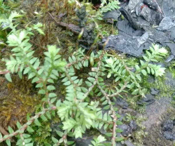 翠云草为中型伏地蔓生蕨。主茎伏地蔓生,长约1m,分枝疏生。节处有不定根,叶卵形,二列疏生。多回分叉。营养叶二型,背腹各二列,腹叶长卵形,背叶矩圆形,全缘,向两侧平展。孢子囊穗四棱形,孢子叶卵状三角形,四列呈覆瓦状排列。
