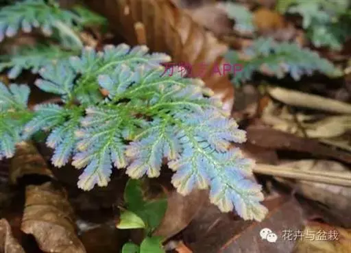 茎伏地蔓生,极细软,分枝处常生不定根,多分枝。小叶卵形,孢子叶卵状三角形。叶色呈蓝绿色,其主茎纤细,呈褐黄色,分生的侧枝着生细致如鳞片的小叶。其羽叶细密,并会发出蓝宝石般的光泽。
