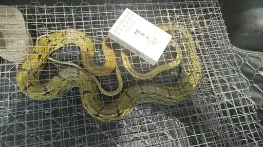 王锦蛇,又称菜花蛇,是游蛇科锦蛇属蛇类。该蛇类无毒;体型较为粗壮;身体总长一般为1500~2000毫米,体重可达1050~1250克。其头部前端具有独特的黑色“王”字形斑纹;背部呈暗黄绿色,前半部分带有黄色横斜纹斑,腹部为黄色并伴有黑色斑点,幼蛇通身浅藕褐色,鳞间皮肤略黑。王锦蛇分布于越南、中国、日本和缅甸。在中国,其分布范围广泛,分布于河南、陕西、四川、湖北、云南、江苏、浙江、广东、广西等省区。栖息环境包括山间林区、丘陵地带及平原,垂直分布范围为100~2300米。该蛇类食性杂,主要以蛙类、鱼类、蜥蜴、鸟类和鼠类为食。肛腺发达,具有异臭。王锦蛇因其嗜食鼠类而能够有效控制鼠类数量,对保持生态平衡及农林业有益。自2005年以来,中国对王锦蛇的贸易几乎完全停止;2020年,中国国家林业和草原局发布了《关于规范禁食野生动物分类管理范围的通知》,禁止以食用为