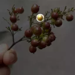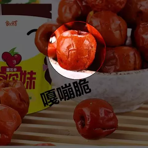 果实呈椭圆形或卵圆形,长2-3cm,直径1.4-2cm。表面黑褐色或棕褐色,稍有光泽,具不规则的皱褶;基部有果梗痕。果肉棕褐色。核近卵形,红棕色或黄棕色,顶端有5个(偶有4或6个)明显的小孔。质坚硬。种子5颗,长圆形。无臭,味酸。以个大、肉厚、色黑褐色者为佳。