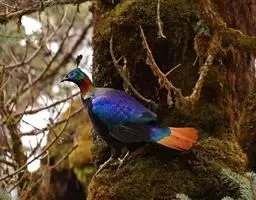 血雉雉科血雉属鸟类,别名血鸡、松花鸡,血雉的雄鸟大覆羽、尾下覆羽、尾上覆羽、脚、头侧、腊膜为红色,…