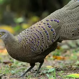 灰孔雀雉:雄鸟体长50-67厘米,体重456-710克;雌鸟体长33-52厘米,体重460-500克。…
