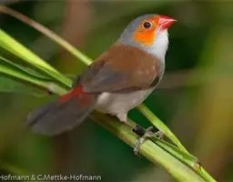 栗腹文鸟:小型鸟类,体长10-12厘米。嘴蓝灰色,基部粗厚,先端尖、呈圆锥状, 脚亦为蓝灰色,整个…
