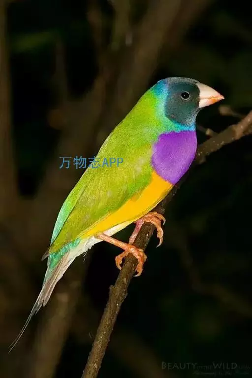 在生物学上,七彩文鸟属于梅花雀科,鹦雀属。从头到尾,长度约12-15厘米,体重约14-17克。