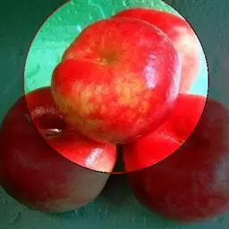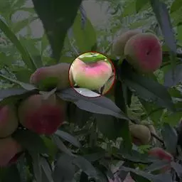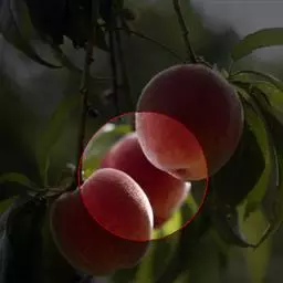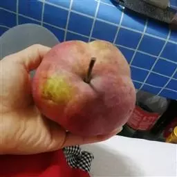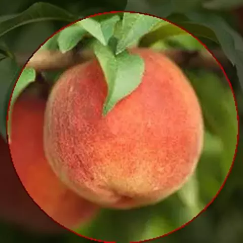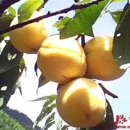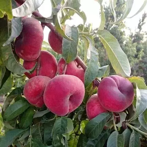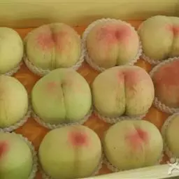 果实圆形,果顶尖。大果型,平均单果重200克,最大果重366克。缝合线浅,茸毛短而稀,两半较对称。果皮全面浓红色,内堂遮阴果也着全红色。果皮不易剥离。果肉白色,肉质硬脆,纤维少,风味甜、香气浓,粘核。可溶性固形物含量16%,品质上、不落果。果实耐储运,常温下储存期10天,0℃条件下可贮存62天以上。