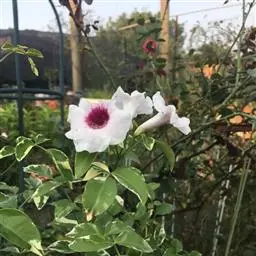 粉花凌霄 K.Schum.)是紫葳科魔盒凌霄属的落叶藤本植物。奇数羽状复叶对生,小叶全缘,…