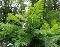 落叶乔木,高达15米。叶对生,为2回羽状复叶,羽片通常在16对以上,每1羽片有、小叶16-24对;小叶椭圆状披针形至椭圆状菱形,长6-12毫米,宽2-7毫米,顶端急尖,基部楔形,全缘。花蓝色,花序长达30厘米,直径约18厘米。花萼筒状,长宽约5毫米,萼齿5。