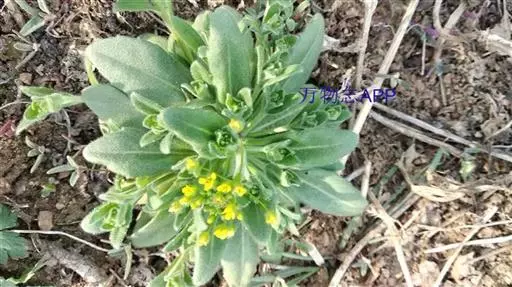 一年或二年生草本。茎直立,高5-45厘米,单一或分枝,疏生叶片或无叶,但分枝茎有叶片;下部密生单毛、叉状毛和星状毛,上部渐稀至无毛。基生叶莲座状,长倒卵形,顶端稍钝,边缘有疏细齿或近于全缘;茎生叶长卵形或卵形,顶端尖,基部楔形或渐圆,边缘有细齿,无柄,上面被单毛和叉状毛,下面以星状毛为多。总状花序有花25-90朵,密集成伞房状,花后显著伸长,疏松,小花梗细,长5-10毫米;萼片椭圆形,背面略有毛;花瓣黄色,花期后成白色,倒楔形,长约2毫米,顶端凹;雄蕊长1.8-2毫米;花药短心形;雌蕊椭圆形,密生短单毛,花柱几乎不发育,柱头小。短角果长圆形或长椭圆形,长4-10毫米,宽1.1-2.5毫米,被短单毛;果梗长8-25毫米,与果序轴成直角开展,或近于直角向上开展。种子椭圆形,褐色,种皮有小疣。花期3-4月上旬,果期5-6月。