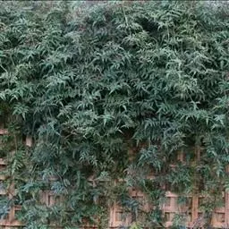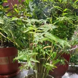 凤尾竹 Raeusch. ex Schult. ’Fernleaf’ R. A. Young)是禾本科,簕竹属孝顺竹的变种。植株较高大,杆高可达6米,竿中空,小枝稍下弯,下部挺直,绿色;竿壁稍薄;节处稍隆起,无毛;叶鞘无毛,纵肋稍隆起,背部具脊;叶耳肾形,边缘具波曲状细长繸毛;叶舌圆拱形,叶片线形,上表面无毛,下表面粉绿而密被短柔毛,小穗含小花,中间小花为两性;外稃两侧稍不对称,长圆状披针形,先端急尖;内稃线形,脊上被短纤毛,花药紫色,子房卵球形,羽毛状。成熟颖果未见。原产中国,华东、华南、西南以至台湾、香港均有栽培。凤尾竹喜温暖、湿润和阳光充足的环境,耐寒。宜土层深厚、肥沃、疏松的微酸性壤土。该种观赏价值较高,宜作庭院丛栽,也可作盆景植物。全草或根入药,味淡、微苦,性寒,有清热利湿、凉血止血、消肿解毒功效,可治痢疾、泄泻等多种病症。凤尾