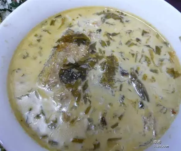4、蒸好的鱼与高汤、雪菜一同煮约2分钟;