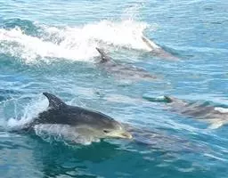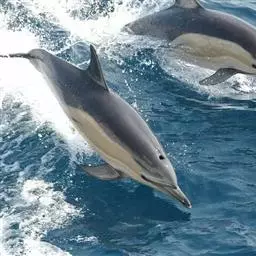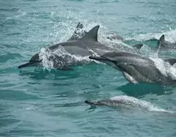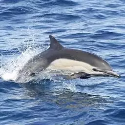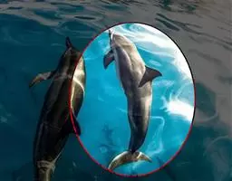 真海豚,身体细而流线型。体色十分复杂而独特,通常十字交叉型,黄褐色在前灰色在后,背面黑色向下延伸,…