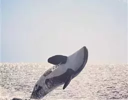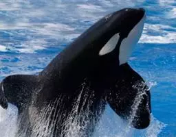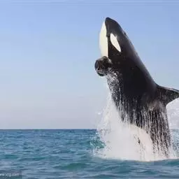 虎鲸(学名:Orcinus orca),虎鲸属,是一种大型齿鲸,海豚科动物,原则上可视作一种鲸鱼,一种海豚。其中大西洋2型、南极A型虎鲸以鲸类甚至蓝鲸为主要食物,远洋型虎鲸以鲨鱼为主要食物,是当之无愧的海中霸王。身长可达8-10米,体重9吨左右,头部略圆,具有不明显的喙;背鳍高而直立,弯曲长达1米;身体黑、白两色。两翼骨远隔开。颞窝大。下颌骨相对较短。在上、下颌每齿列有10-12枚圆锥形的齿。嘴巴细长,牙齿锋利,性情凶猛,善于进攻猎物。