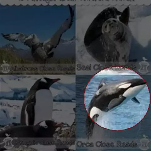 研究人员将生活在南极及其附近海域的虎鲸分为ABCD四个类群,它们之间最显著的区别要算是体色以及眼睛后面的白色斑块了。其中南极A型虎鲸拥有明显的黑白色皮肤;南极B型虎鲸则有些偏向灰色和黄色,它们眼睛后面的白斑也是南极地区虎鲸中最大的,从白斑的上部到背鳍的灰色斑纹处有一条影线;南极C型虎鲸拥有和B型虎鲸类似的体色和影线,但它们的眼后白斑明显向上倾斜,体型也是最小的,因此有侏儒虎鲸的绰号;南极D型虎鲸则拥有极小的白色眼斑,和其他虎鲸比起来,它们的头部呈现球状,和领航鲸(巨头鲸)的头部形态较为接近,背鳍也明显比ABC型更加向后弯曲。