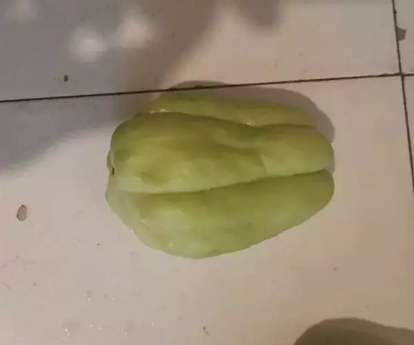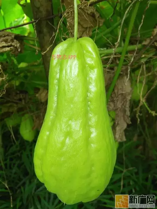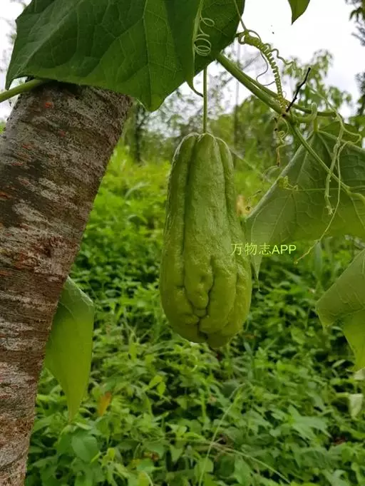 佛手瓜具块状根的多年生宿根草质藤本,茎攀援或人工架生,有棱沟。叶柄纤细,无毛,长5~15厘米;叶片膜质,近圆形,中间的裂片较大,侧面的较小,先端渐尖,边缘有小细齿,基部心形,弯缺较深,近圆形,深1~3厘米,宽1~2厘米;上面深绿色,稍粗糙,背面淡绿色,有短柔毛,以脉上较密。卷须粗壮,有棱沟,无毛,3~5歧。雌雄同株。雄花10~30朵生于8~30厘米长的总花梗上部成总状花序,花序轴稍粗壮,无毛,花梗长1~6毫米;花萼筒短,裂片展开,近无毛,长5~7毫米,宽1~1.5毫米;花冠辐状,宽12~17毫米,分裂到基部,裂片卵状披针形,5脉;雄蕊3,花丝合生,花药分离,药室折曲。雌花单生,花梗长1~1.5厘米;花冠与花萼同雄花;子房倒卵形,具5棱,有疏毛,1室,具1枚下垂生的胚珠,花柱长2~3毫米,柱头宽2毫米。果实淡绿色,倒卵形,有稀疏短硬毛,长8~12厘米,径6~8厘米,上部有5条纵沟,具1枚种子。种子大型,长达10厘米,宽7厘米,卵形,压扁状。花期7~9月,果期8~10月。