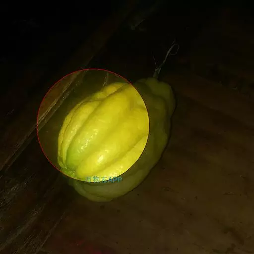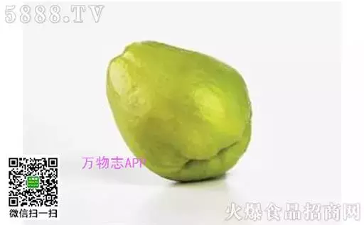 果实梨形,有明显的5条纵沟,瓜顶有一条缝合线。果色由绿色至乳白色,单瓜重250g~500g。果肉乳白色,一个果实内只具一枚种子,果肉与种皮紧密贴合,不易分离;种子扁平,纺锤形。种皮系肉质膜状,不具备控制种子内失水的功能。当种子剥离果实后,极易失水干瘪而丧失生活力。故种子不能晒干贮存,一般均以整个种瓜为繁殖材料。种子无休眠期,成熟后如不及时采收,种子在瓜中就会很快萌发。这一现象称“胎萌”,是佛手瓜的一大特点。