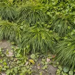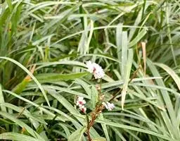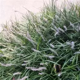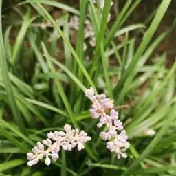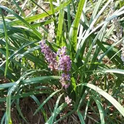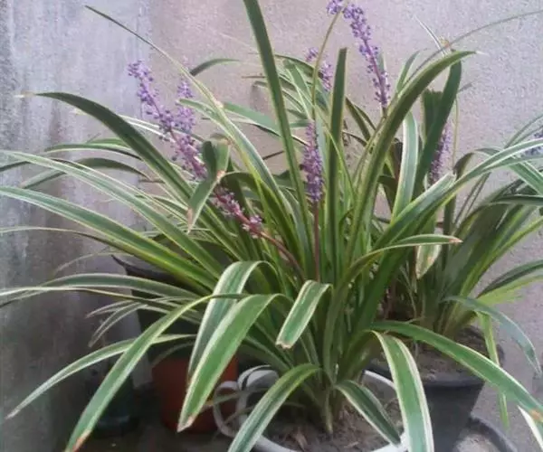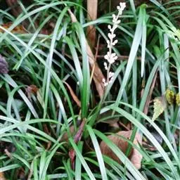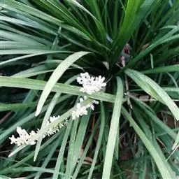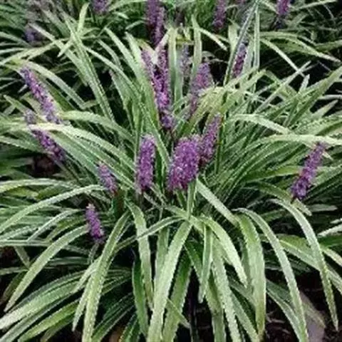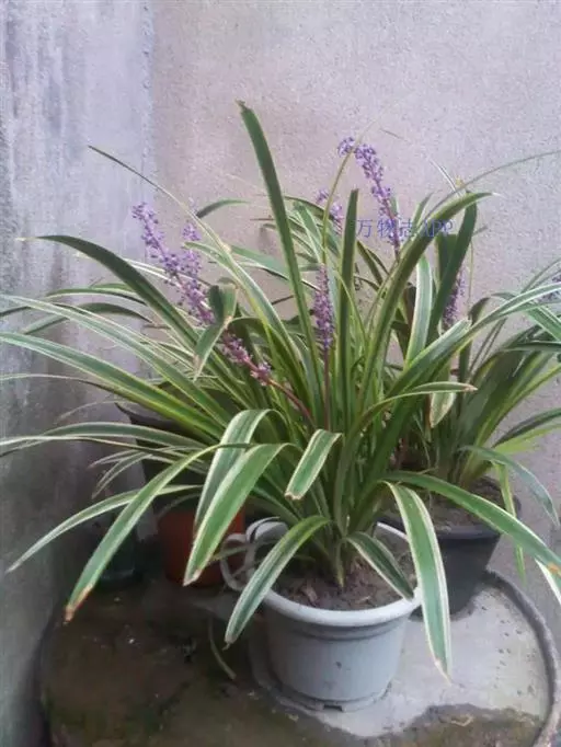 银纹沿阶草百合科沿阶草属,多年生草本,高约5~30cm。叶丛生,无柄,窄线形,革质,叶面有银白色纵纹,叶端弯垂。总状花序具15~20朵花,花常生或2~3朵簇生苞片腋内,花小,淡蓝色,夏季开放;果期8~10。