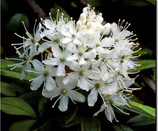 照山白(拉丁学名:Rhododendron micranthum Turcz.)杜鹃花科常绿灌木,小枝褐色,有褐色鳞片及柔毛。叶互生,革质;椭圆状披针形或狭卵圆形。先端尖,边缘有疏浅齿或不明显,基部楔形,上面绿色,下面密生褐色腺鳞。花密生成总状花序;花冠钟形白色,蒴果长圆形,成熟后褐色,花果期5~9月。