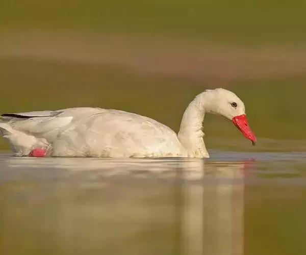 扁嘴天鹅(学名:Coscoroba coscoroba):体长90-115厘米,体羽白色,羽端黑色,在飞行时则很明显。雁喙和脚红色。栖息于茂密的沼泽及湖泊,主要吃草及水生植物,也会吃蚌类及鱼类。分布于南美洲,冬天会向北迁徙至智利中部、阿根廷北部、乌拉圭及巴西东南端。