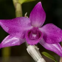 棒节石斛(学名:Dendrobium findlayanum Par. et Rchb. f.):茎直立或斜立,不分枝,具数节。叶革质,互生于茎的上部,披针形。总状花序通常从落了叶的老茎上部发出,具2朵花;花白色带玫瑰色先端,开展;花瓣宽长圆形,长3.5-3.7厘米,宽1.8厘米,先端急尖,基部稍收狭为短爪,具5条脉;唇瓣近圆形,凹的,宽约2.4厘米,先端锐尖带玫瑰色,基部两侧具紫红色条纹;唇盘中央金黄色,密布短柔毛。花期3月。