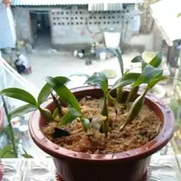 通常选用四壁多孔的塑料或陶瓷花盆,用碳根、泥炭藓、树皮块、木炭块等作盆栽材料。根据兰苗的大小,选择不同规格的花盆,但不宜用大盆栽小苗口上述栽好材料在使用前必需在清水中浸泡1天以上备用。盆底要多垫大瓦片或碎砖块,深度至盆底约1/3处,然后将兰苗放于盆中央,并在一旁插一细竹竿以固定兰苗,再填入其他栽培材料,注意根与根之间用材料隔开。