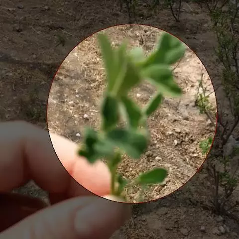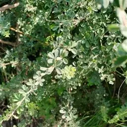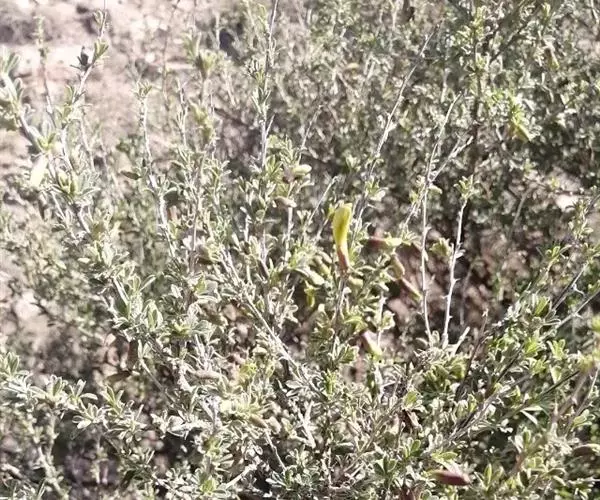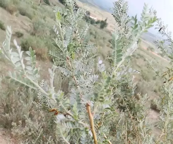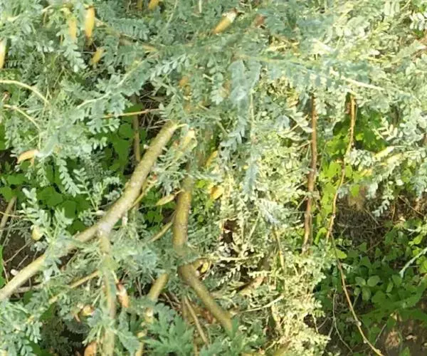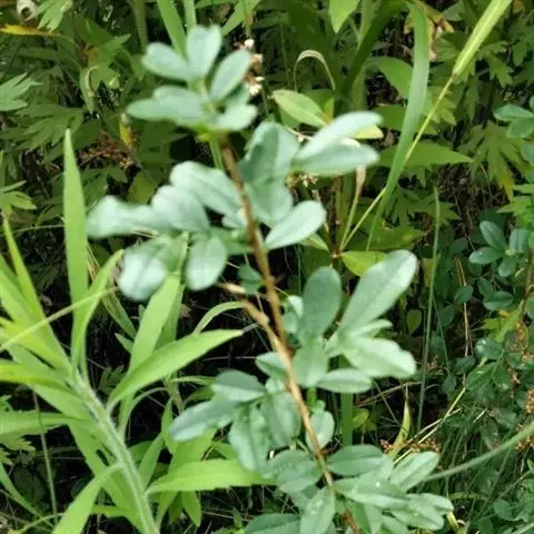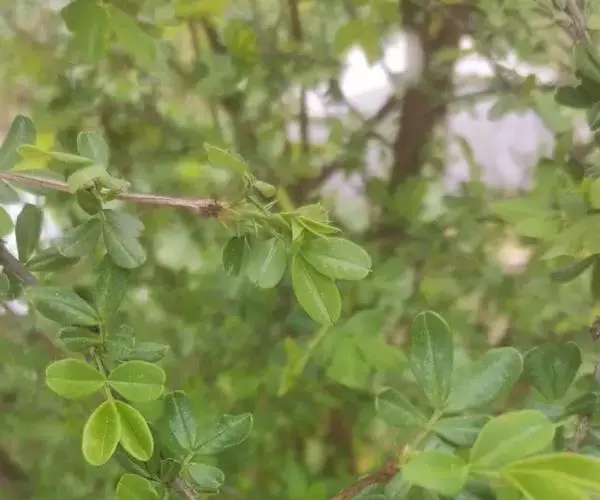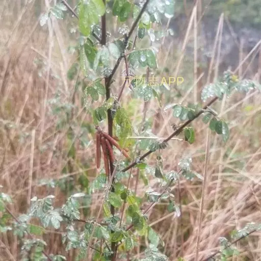 灌木,高1-2米。树皮深褐色;小枝有棱,无毛。托叶三角形,硬化成针刺,长5-7毫米;叶轴脱落或硬化成针刺,针刺长7-15(25)毫米;小叶2对,羽状,有时假掌状,上部1对常较下部的为大,厚革质或硬纸质,倒卵形或长圆状倒卵形,长1-3.5厘米,宽5-15毫米,先端圆形或微缺,具刺尖或无刺尖,基部楔形或宽楔形,上面深绿色,下面淡绿色。