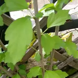 一年生直立草本,高达2米,茎淡紫色,无毛。叶异型,下部的叶卵形,不分裂,上部的叶掌状3深裂,裂片披针形,长2-8厘米,宽5-15毫米,具锯齿,先端钝或渐尖,基部圆形至宽楔形,两面均无毛,主脉3-5条,背面中肋具腺;叶柄长2-8厘米,疏被长柔毛;托叶线形,长约1厘米,疏被长柔毛。