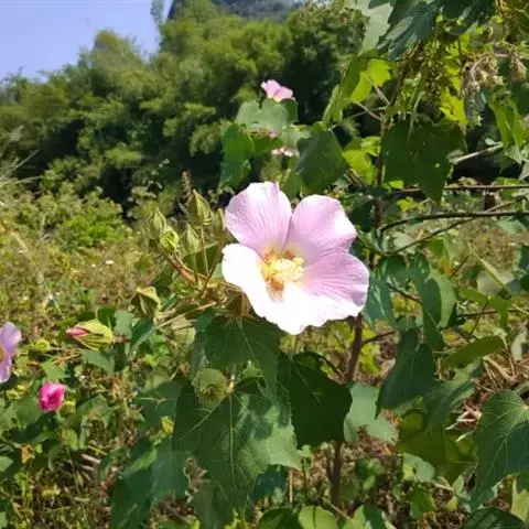 观赏:玫瑰茄花紫红色,色泽艳丽,花冠与花尊美丽别致,是美化环境极好的观赏植物。