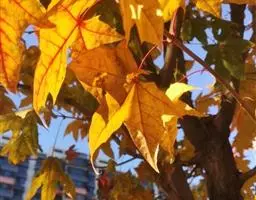 三角槭,别名:三角枫,拉丁文名:Acer buergerianum Miq.无患子目、槭树科、槭属落叶乔木,树皮褐色或深褐色,粗糙裂片向前伸,全缘或有不规则锯齿。果核凸出,果翅展开成锐角。喜光,稍耐阴,喜温暖湿润气候,稍耐寒,较耐水湿,耐修剪。秋叶暗红色或橙色。产中国长江中下游地区,黄河流域有栽培。宜作庭荫树、行道树及护岸树种。也可栽作绿篱。