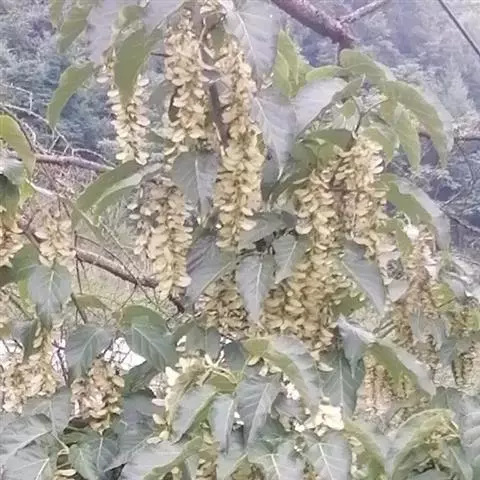 翅果黄褐色;小坚果特别凸起,直径6毫米;翅与小坚果共长2-2.5厘米,稀达3厘米,宽9-10毫米,中部最宽,基部狭窄,张开成锐角或近于直立。花期4月,果期8月。