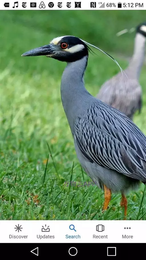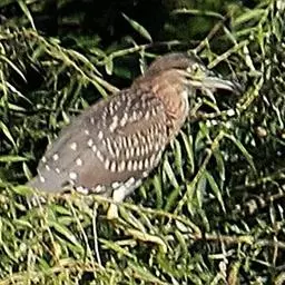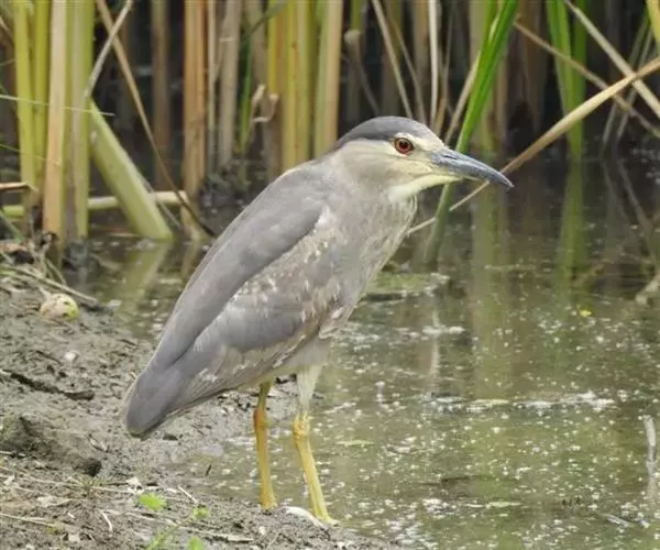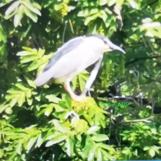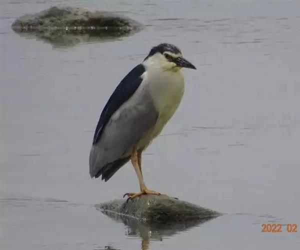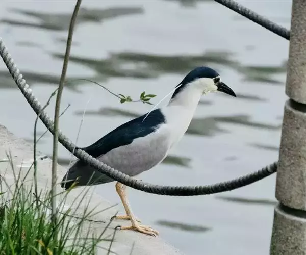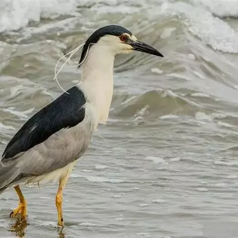 夜鹭(学名:Nycticorax nycticorax)是中型涉禽,体长46-60厘米。体较粗胖,颈较短;嘴尖细,微向下曲,黑色;胫裸出部分较少,脚和趾黄色;头顶至背黑绿色而具金属光泽;上体余部灰色;下体白色;枕部披有2-3枚长带状白色饰羽,下垂至背上,极为醒目。