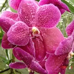 大尖囊兰(学名:Kingidium deliciosum (Rchb. f.) Sweet):根簇生,扁平,长而弯曲。茎短,长1-1.5厘米,具3-4枚叶。叶二列,纸质,倒卵状披针形或有时椭圆形。花序斜出或上举,上部常分枝;密生数朵小花;开花时具叶,萼片和花瓣浅白色带淡紫色斑纹;花瓣近倒卵形,长5-5.5毫米,宽2.7-3毫米,先端钝,具3条脉;唇瓣3裂,基部无爪。花期7月。