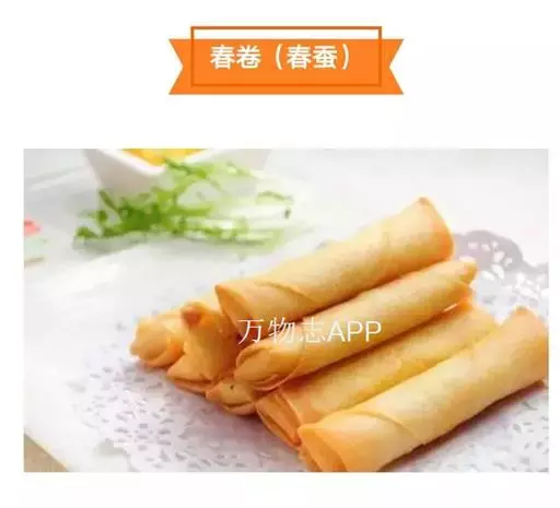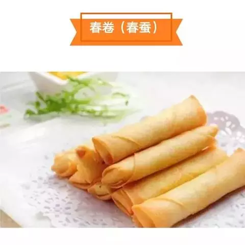 春卷 春卷是由古代立春之日食用春盘的习俗演变而成。春盘始于晋代,初名五辛盘。五辛盘中盛有五种辛荤的蔬菜,如小蒜、大蒜、韭、芸薹、胡荽等,是供人们在春日食用后发五脏之气用的。唐时,春盘的内容有了变化,春盘的内容更趋精美。元代《居家必用事类全集》已经出现将春饼卷裹馅料油炸后食用的记载。类似记载,明代食谱《易牙遗意》中也有。到了清代,已出现春卷的名称。汉崔寔《四民月令》:“立春日食生菜,取迎新之意。”唐岑参《送杨千趁岁赴汝南郡觐省便成婚》诗:“汝南遥倚望,早去及春盘。”唐杜甫《立春》诗:“春日春盘细生菜,忽忆两京梅发时。”宋周密《武林旧事·立春》:“后苑办造春盘供进,及分赐贵邸、宰臣、巨珰,翠缕红丝、金鸡玉燕,备极精巧,每盘值万钱。”《宋史.礼志》:“立春赐春盘。”《类腋·天部·正月》引《四时宝镜》:“东晋李鄂,立春日命以芦菔、芹芽为春盘,相馈贶。”清潘荣陛《帝京岁时纪胜.正月·春盘》:“新春日献辛盘。虽士庶之家,亦必割鸡豚,炊面饼,而杂以生菜、青韭菜、羊角葱,冲和合菜皮,兼生食水红萝卜,名曰咬春。”