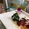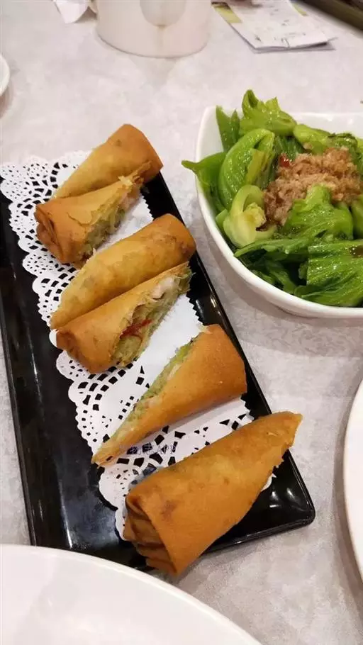 【食品特点】:包裹在有韧性的春饼里的清甜蟹肉是这道菜的灵魂所在。芽菜和菊花瓣更是让一盘子的菜品生动起来。