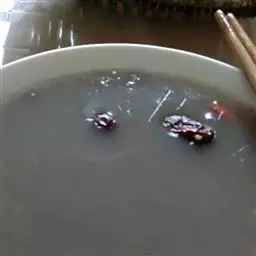 1.将面粉逐渐加入四杯水用搅拌器搅匀成厚面糊(各地面粉不同,需水量有异,以手 能抓住面糊,手心向下而面糊仍能抓住不下滑为宜,如面煳太稀,无法做成面糊,太
