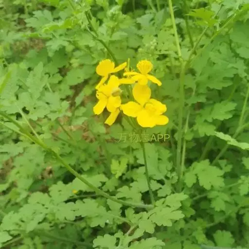 白屈菜(学名:Chelidonium majus),为双子叶植物纲、罂粟科、白屈菜属的一个植物种。出自《救荒本草》,属全草类。为多年生草本,主根圆锥状,土黄色。茎直立,高30~100厘米,多分枝,有白粉,疏生白色细长柔毛,断之有黄色乳汁。主根粗壮,圆锥形,土黄色或暗褐色,密生须根。茎直立,多分枝,有白粉,具白色细长柔毛。