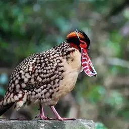 黄腹角雉:是鸟纲、雉科中国特产的一种鸟类。体长约50-65厘米。雄鸟上体栗褐色,…