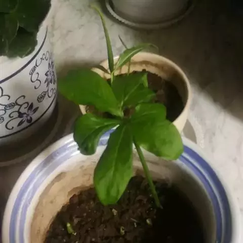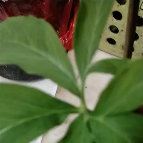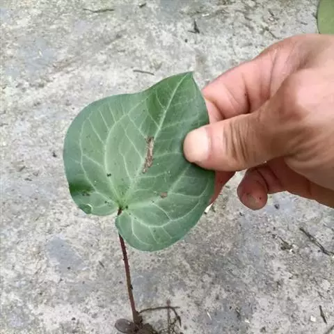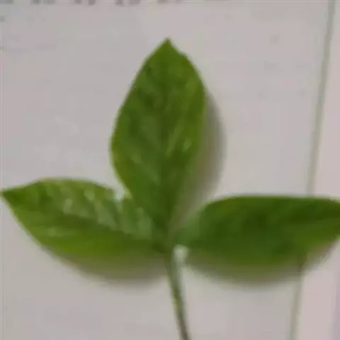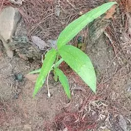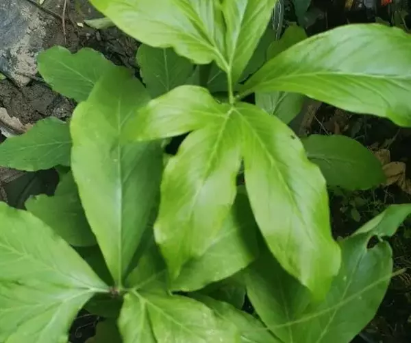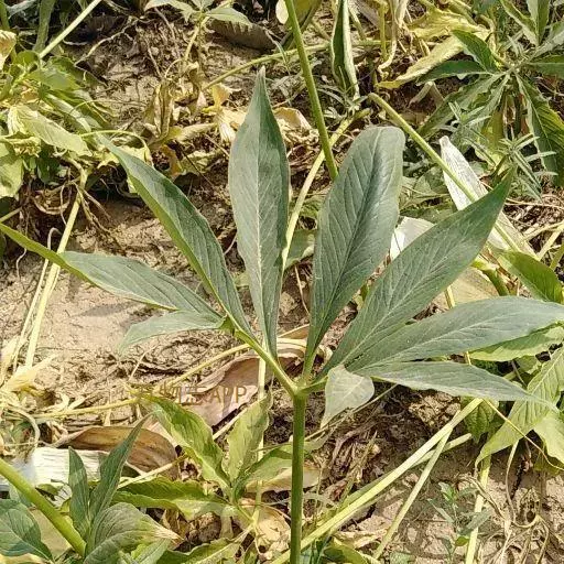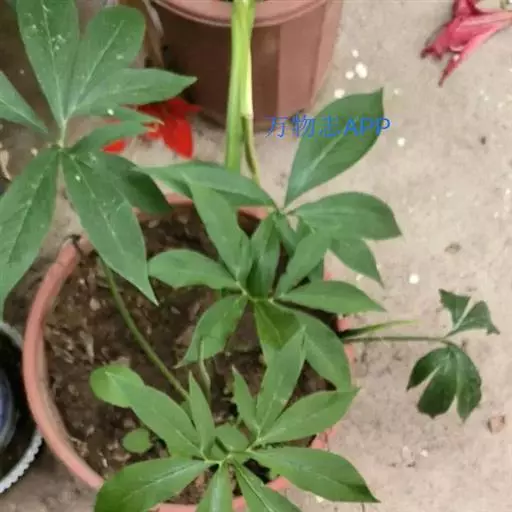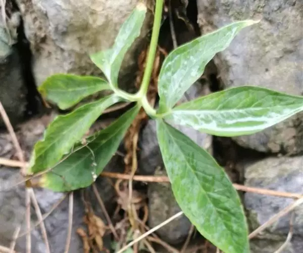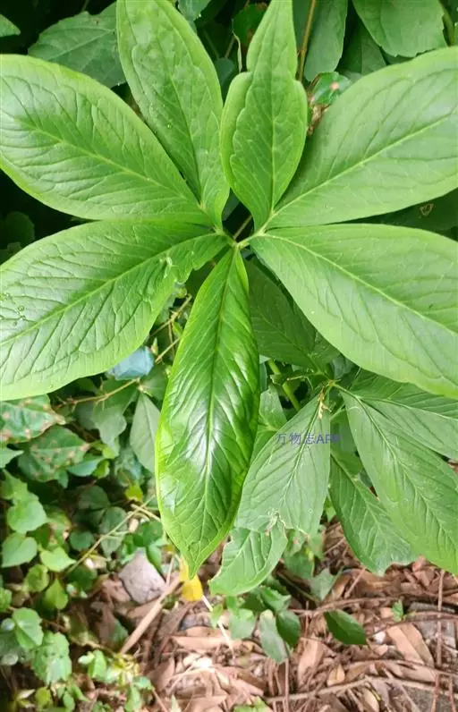 叶1-3或更多,叶柄淡绿色,长20-70厘米,下部具鞘;叶片鸟足状分裂,裂片6-11,披针形,渐尖,基部渐狭,楔形,中裂片长15-18厘米,宽3厘米,两侧裂片依次渐短小,最外的有时长仅4-5厘米;侧脉6-7对,离边缘3-4毫米处弧曲,连结为集合脉,网脉不明显。