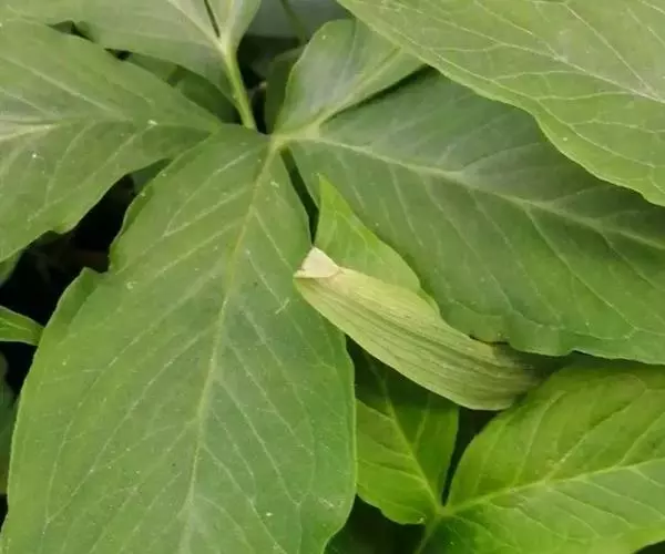虎掌(学名:Pinellia pedatisecta Schott)是天南星科,半夏属多年生草本植物,块茎近圆球形,直径可达4厘米,根肉质,叶柄淡绿色,下部具鞘;叶片鸟足状分裂,裂片披针形,渐尖,网脉不明显。花序柄长直立。佛焰苞淡绿色,管部长圆形,肉穗花序,附属器黄绿色,细线形,浆果卵圆形,6-7月开花,9-11月结果。