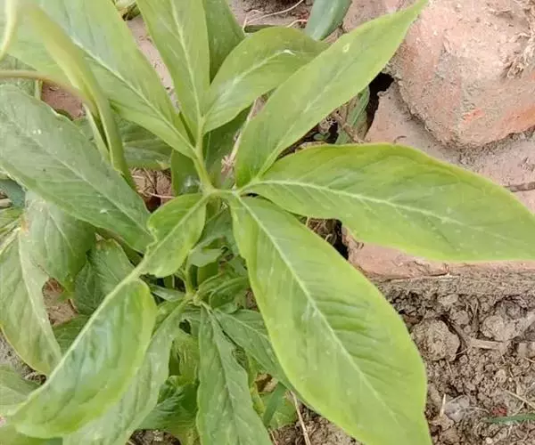 病毒病为全株性病害,多在夏季发生,发病时叶片上产生黄色不规则的斑驳,使叶片变为花叶症状,同时发生叶片变形、皱缩、卷曲,成畸形症状,使植株生长不良、矮小,后期叶片枯死。有的全株叶片细长、皱缩,严重影响产量和质量。