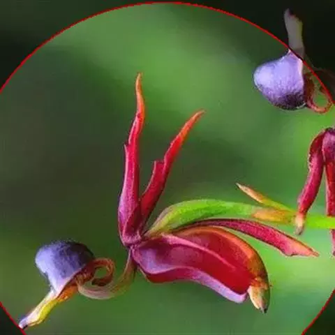 带唇兰:假鳞茎暗紫色,圆柱形,罕为卵状圆锥形,被膜质鞘,顶生1枚叶。叶狭长圆形或椭圆状披针形。…