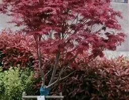 红枫,园艺种,槭树科槭属落叶小乔木,高5~8 m;树冠伞形,枝条开张,细弱。单叶对生,近圆形,薄纸质,…