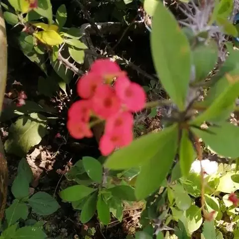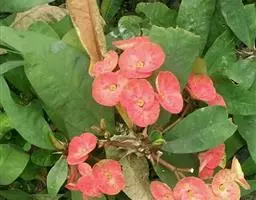 虎刺梅:别称铁海棠,是蔓生灌木植物。茎多分枝,长60-100厘米,直径5-10毫米,具纵棱,密生硬…