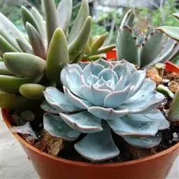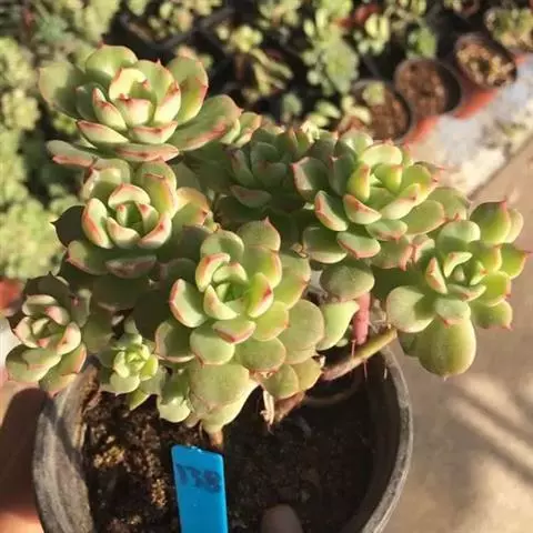 薄叶蓝鸟 叶片蓝绿色,叶尖红色,带粉,花型紧凑,非常漂亮。原产于墨西哥,现世界各地均有栽培。